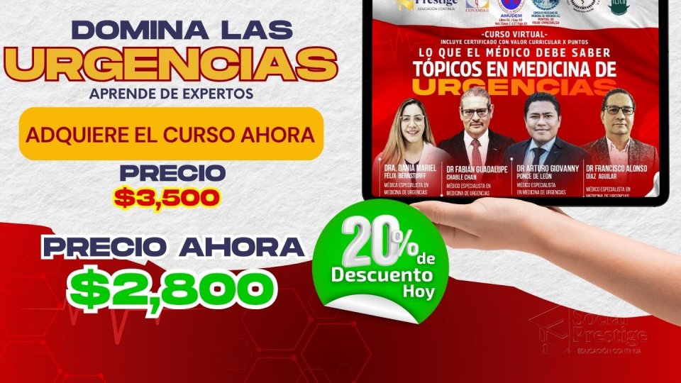 ¡Domina las urgencias médicas con expertos! Accede al curso "Tópicos en Medicina de Urgencias: Lo que el médico debe saber", diseñado para estudiantes y profesionales de la salud que buscan conocimientos actualizados en toxicología, trauma, infarto, EVC y urgencias obstétricas. 100% virtual y certificado 5 módulos con ponentes especializados Flexibilidad para aprender a tu ritmo